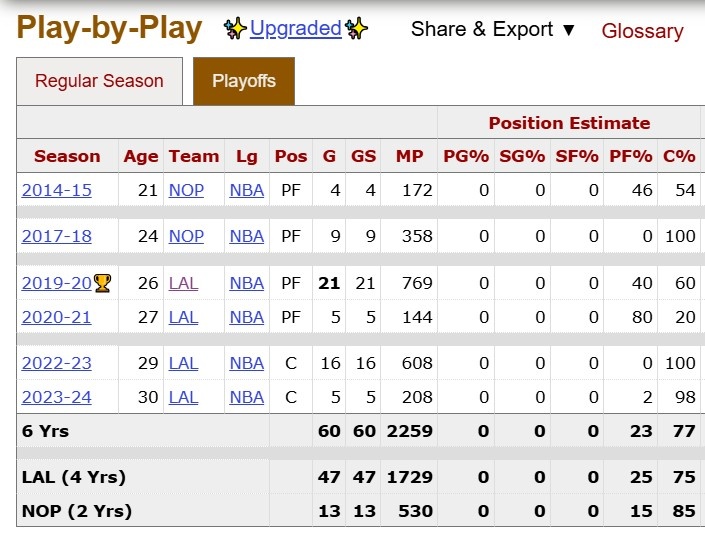 你觉得到底打哪个位置好?浓眉在湖人74%打中锋 26%打大前