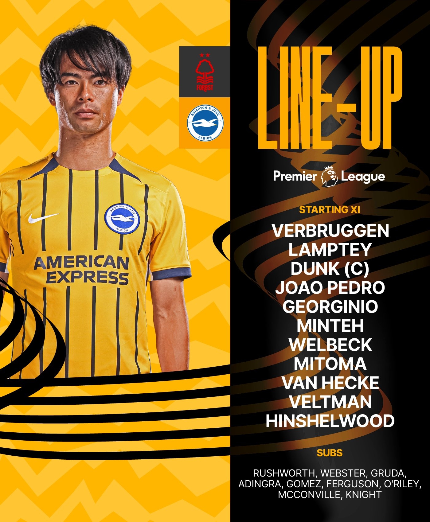 布莱顿替补:39-拉什沃思、4-韦伯斯特、8-格鲁达、11-阿迪格拉、25-戈麦斯、28-伊万-弗格森、33-奥莱利、44-麦康维尔、奈特