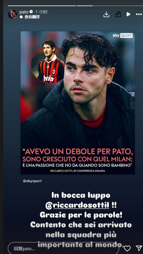 - 帕托祝福索蒂尔:感谢你的发言 为你加盟世界上最重要的球队高兴
